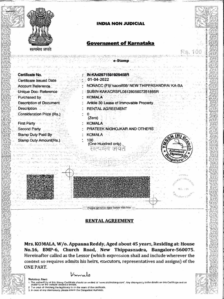 Himanshu Tiwari Rental Agreement Bangalore PDF Lease Landlord