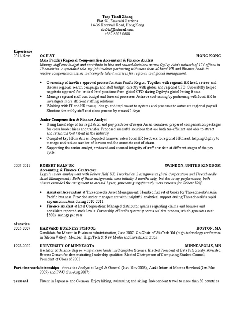 Hbs Resume Template