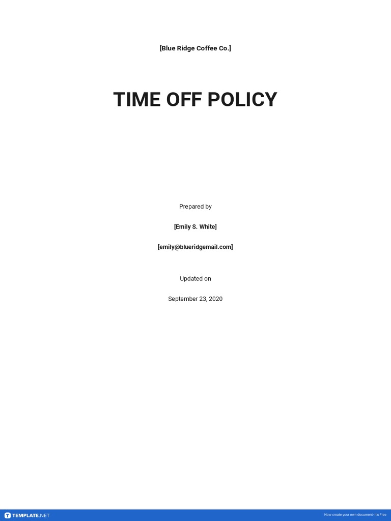 PaidTimeOff Policy Template in Pages, Word, Google Docs Download